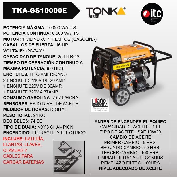 El Generador 10,000 Watts Tonka es la inversión ideal para quienes buscan maximizar la eficiencia y seguridad en la generación autónoma de energía, con la calidad y respaldo de la marca Tonka.
